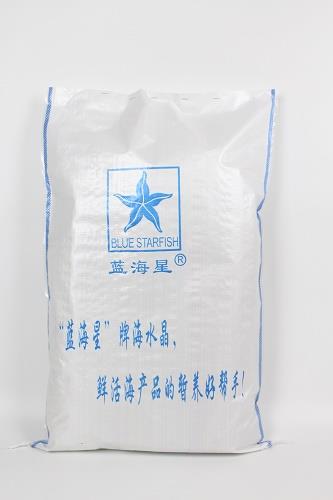 Kuvauksessa/valvonta: Sininen meritähti suolaa Paketti pussit 20kgs. Muovi pp kudottu laukku yksi puoli offsetpainatus sinistä sanoja ja kaksipuolinen laminointi vedenpitävä.